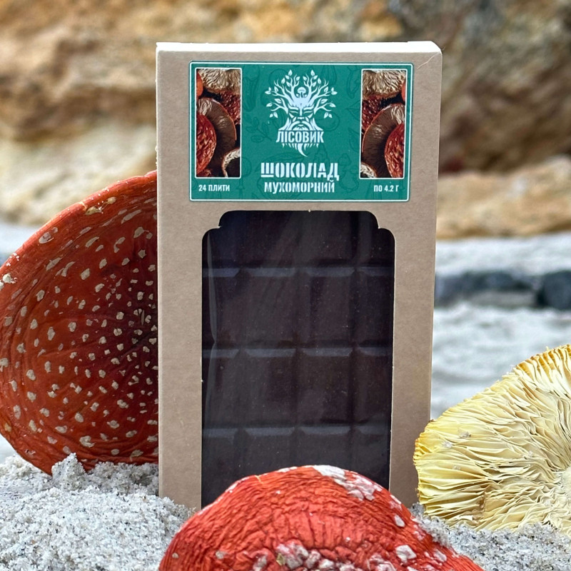 Грибний шоколад із мухомором червоним від бренду Лісовик — новий ЕКО-продукт в лінійці грибних шоколадів. Це сучасний формат мікродозингу у вигляді натурального темного шоколаду. Поєднання традиційного гриба та якісної шоколадної основи створює зручний, дозований і більш м’який спосіб використання мухомора червоного в повсякденному ритмі життя. Спираючись на досвід споживачів, можна впевнено сказати, що дія гриба в такому форматі значно відрізняється від звичайного вживання його у вигляді порошку, сухих капелюшків, таблеток чи капсул.