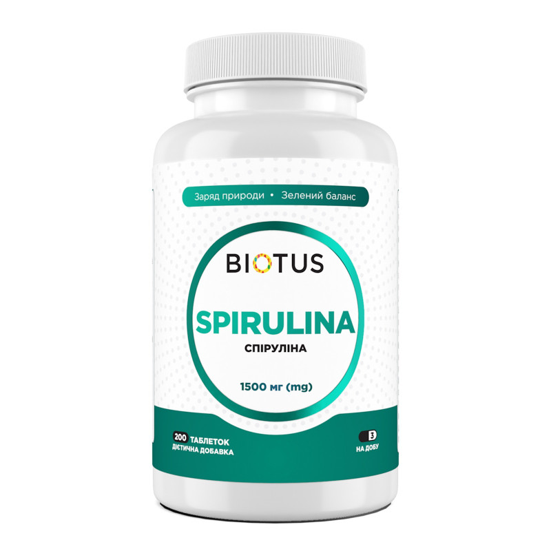Спіруліна, Spirulina, Biotus, 200 таблеток (1500 мг у трьох таблетках)