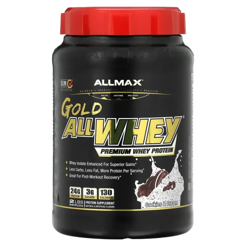 Why Supplement with Gold AllWhey®?Research shows that consuming high levels of protein post-workout help muscles recover faster. With the body primed for nutrient absorption, a rapidly digestible protein source helps turn the body from a catabolic (muscle-wasting) state to an anabolic (muscle-building) state. Whey is recognized as the best post-workout protein source because with its high biological value, it gets absorbed and utilized faster than any other source. Additionally its complete amino acid profile, high in naturally occurring essential branched chain amino acids (BCAAs), allows whey to accelerate protein synthesis and muscle growth. This cannot be duplicated with a whole food protein source.
