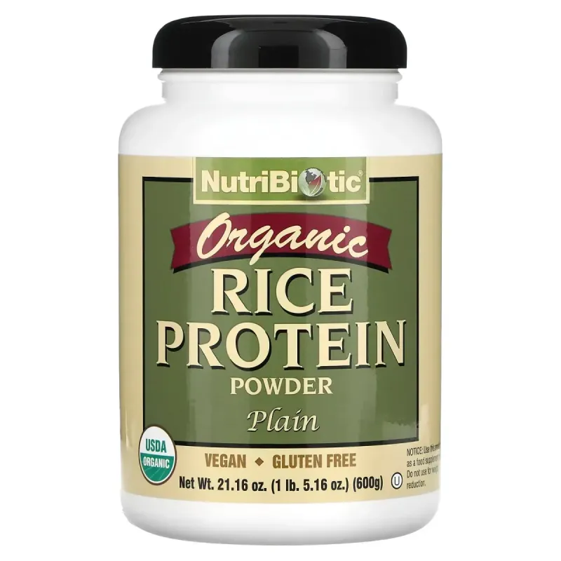 NutriBiotic Organic Plain Rice Protein is a high quality, low carbohydrate vegan protein powder. This easily digestible protein provides an extensive array of naturally occurring amino acids, the building blocks of protein.