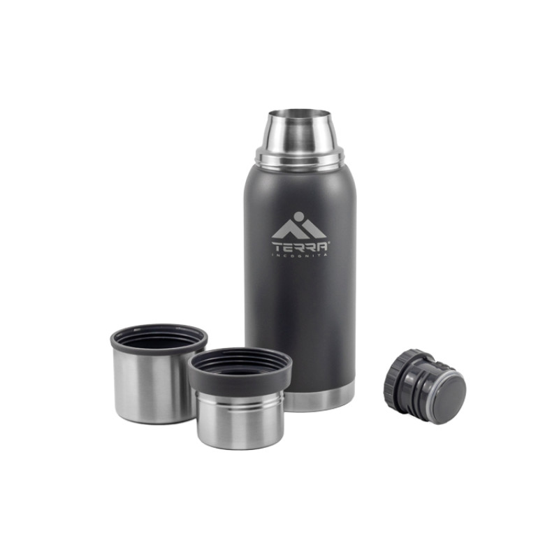 Термос Terra Incognita Duett 1000 Корпус та колба термоса виготовлені з міцної харчової нержавіючої сталі 18/8. Термос довгий час зберігає напій гарячим / холодним завдяки вакуумній ізоляції між стінками корпусу та колбою.