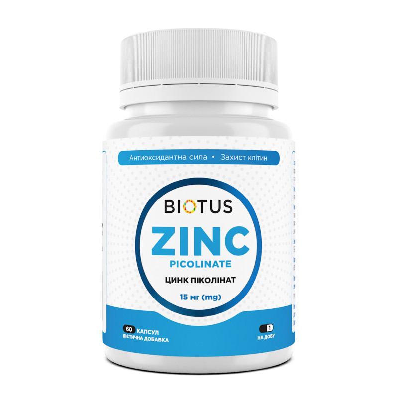 Цинк піколінат, Zinc Picolinate, Biotus, 15 мг, 60 капсул