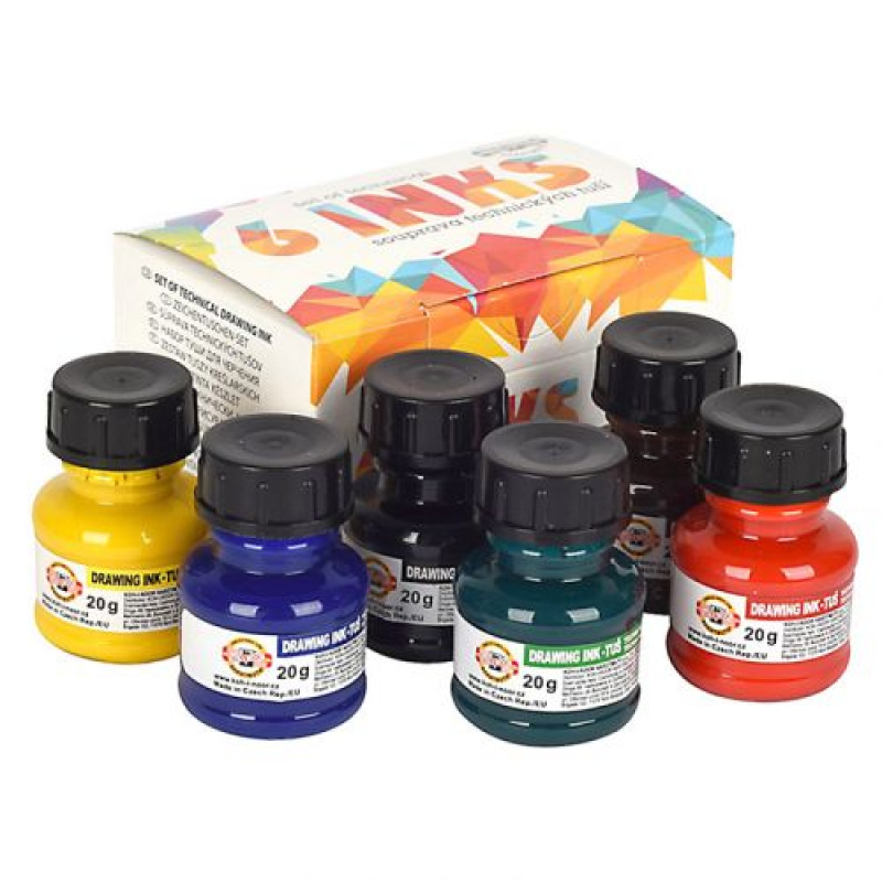 Туш для креслення, 20г., набір 6 кол.