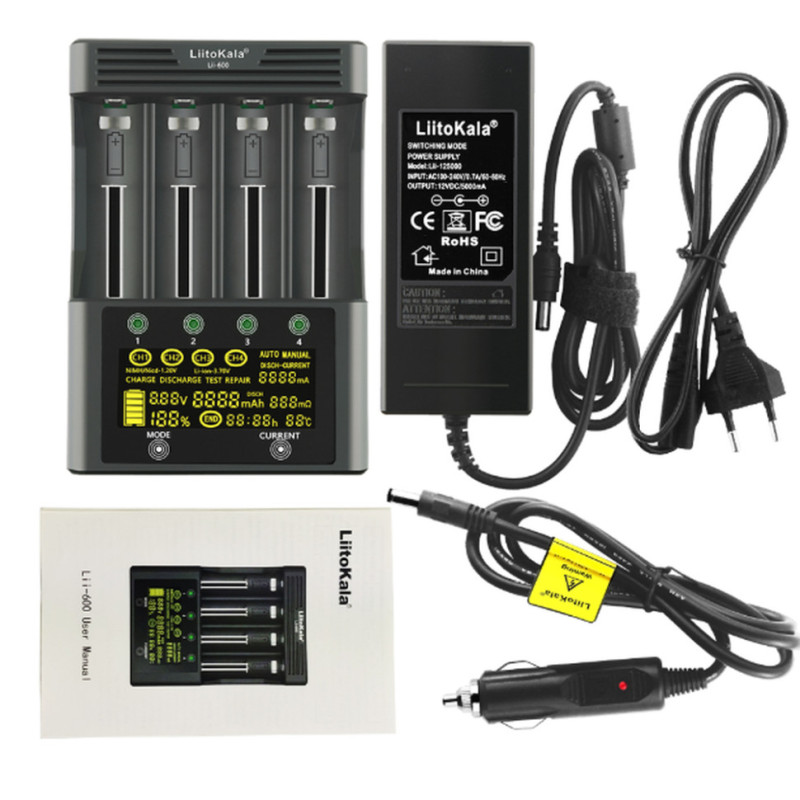 Універсальний інтелектуальний зарядний пристрій LiitoKala Lii-600 EU для акумуляторів + автомобільний кабель
