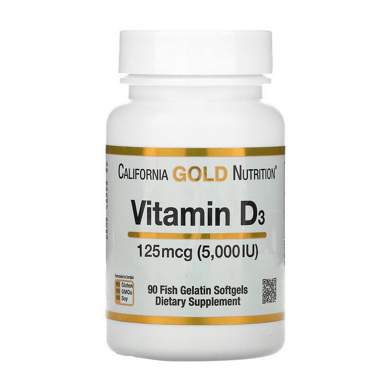 California Gold Nutrition Vitamin D3 содержит витамин D3 в виде холекальциферола из ланолина в мягких желатиновых капсулах из рыбьего жира.
