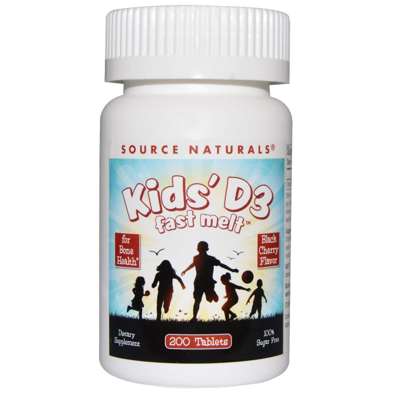 Вітамін D3 для дітей, Kids 'D3, Source Naturals, швидкорозчинні, смак ягід, 200 таб.