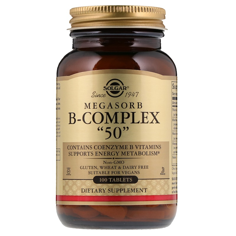 Вітаміни групи В-50, Megasorb B-Complex, Solgar, комплекс, 100 таблеток