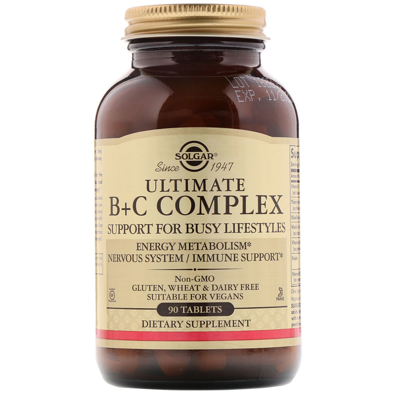 Вітаміни В + С, комплекс, Ultimate B + C, Solgar, 90 таблеток