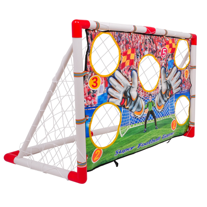 Футбольні ворота MEGA з мішенню - чудова гра та тренування влучності. Ворота мають спеціальну мішень з отворами різного діаметра для тренування влучності - ідеальний варіант для дітей від 3 років, які люблять активні ігри на свіжому повітрі та спортивні виклики. Мішень з отворами, позначеними балами, дозволяє дітям розвивати точність ударів та навчає здоровій конкуренції.