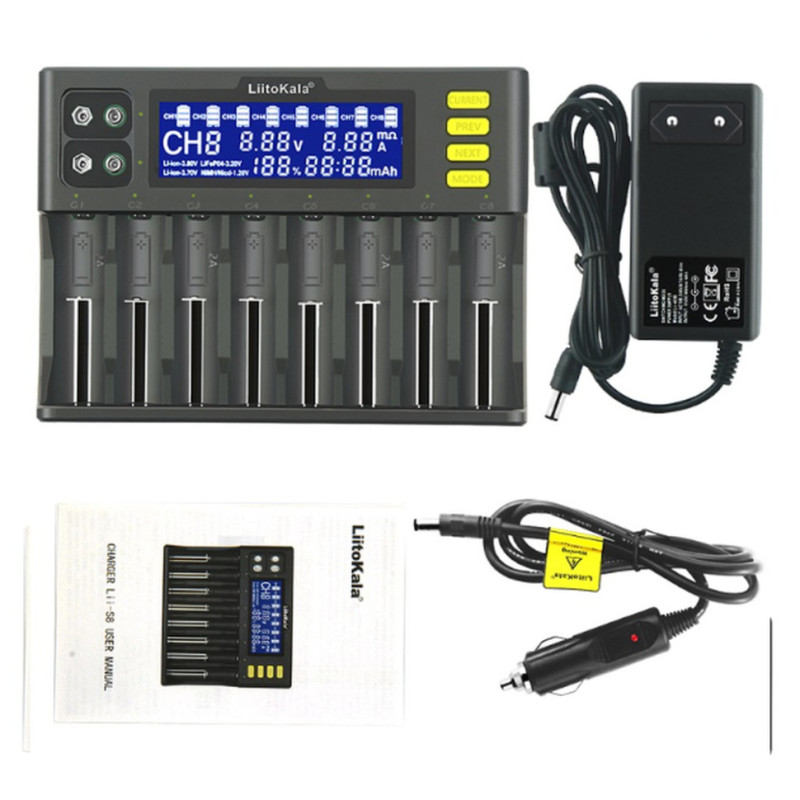 - восьмиканальний зарядний пристрій LiitoKala з LCD-дисплеєм;